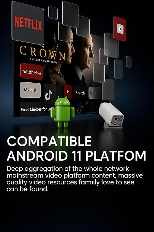 - The smart movie projector fits any setting—home, bedroom, living room, or outdoor camping—perfect for watching movies anywhere, anytime.